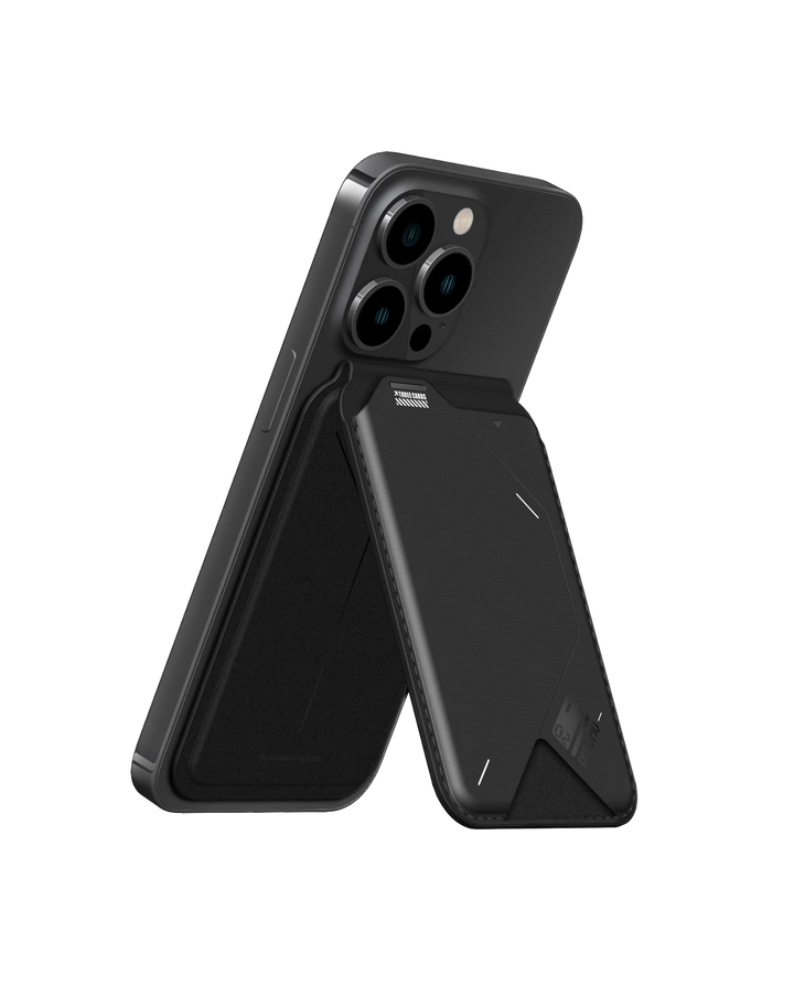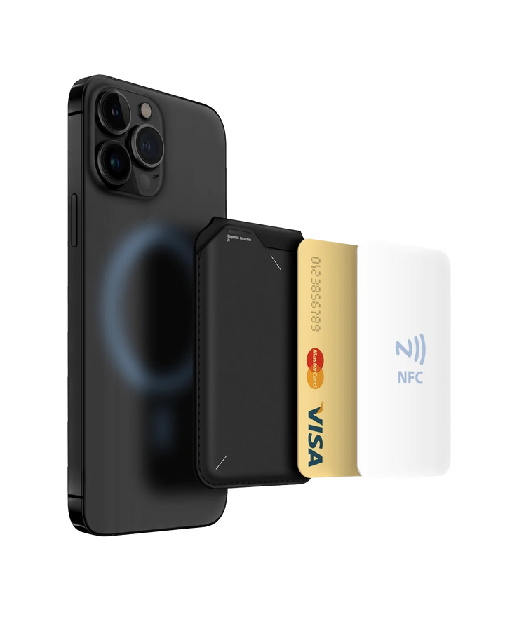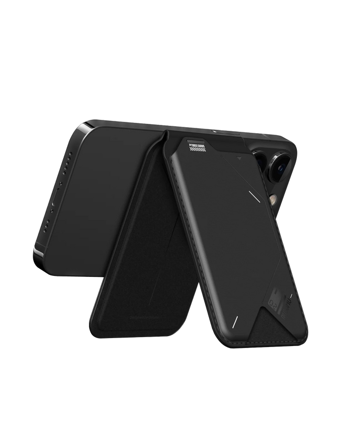 .يتسع لـ 3 بطاقات-.نحيف وأنيق-.قابل للطي، ليس فقط محفظة، بل حامل أيضًا-.يدعم أفقيًا ورأسيًا-.نافذة شفافة قابلة للفتح للصور وبطاقة الهوية-.متوافق مع الماجسيف-.اللون: أسود-660399