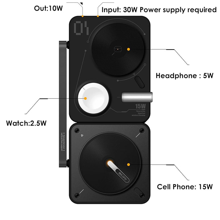 Aulumu M01 Foldable Magnetic Wireless Fast Charger 4-in-1-Black