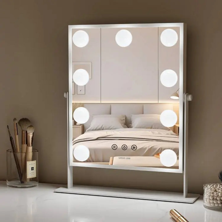 :المميزات-.مرآة عالية الدقة-.مادة الصنع: معدن-.موصل الكيبل: من يو اس بي إلى التايب سي-.LED الإضاءة: 9 مصابيح-.إعدادات الإضاءة: الدافئة والباردة والطبيعية-.الدوران: 360 درجة-.التحكم باللمس-.مستويات سطوع قابلة للتعديل-.الطاقة: 5 واط-.اللون: أبيض-.الضمان: 24 شهرًا-190594