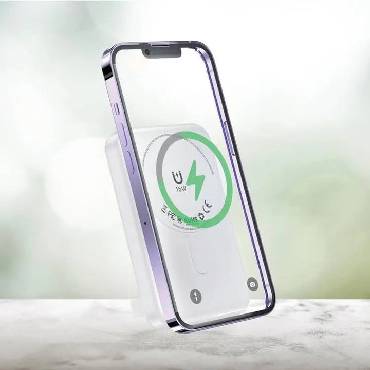 .سعة الشاحن: 10000 مللي أمبير-.تقنية الشحن: شحن سريع 20 واط وشحن لاسلكي 15 واط-.منافذ الشحن: منفذ واحد تايب سي ومنفذ يو اس بي-. مدمج بستاند-.يتضمن كيبل من التايب سي إلى التايب...