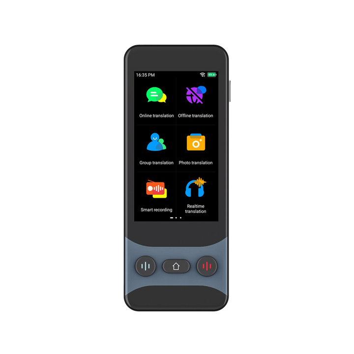 :المميزات-.ترجمة عبر الإنترنت وخارجها-.النظام: نظام تشغيل أندرويد 7.1-.الدقة: 854*480-.أبعاد المنتج: 118*47*12.7 مم-.سعة تخزين الذاكرة: 8 جيجابايت-.سرعة الترجمة: 0.5 ثانية-.وقت إعادة الشحن: 2.5 ساعة-.سعة البطارية: 1500 مللي أمبير-.وقت العمل: 8 ساعات-.شاشة تعمل...