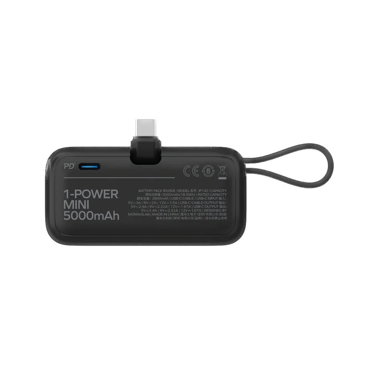 Momax 1-Power Mini 5000mAh 3-in-1 Battery Pack With Usb-C Plug IP130
