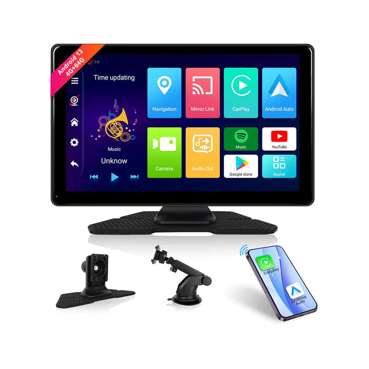 :المميزات-.نظام التشغيل: أندرويد 10-.وحدة المعالجة المركزية: ثماني النواة-.الذاكرة: 4 جيجابايت بالاضافة 64 جيجابايت-.دعم نظام تحديد المواقع-.واي فاي وبلوتوث-.النسخ المتطابق-.شاشة 9 بوصة-.متوافق مع نظام الاندرويد والايفون-.شاشة تعمل باللمس-.مكبر الصوت-.AUXو SDالمنافذ: كاميرا، تايب...