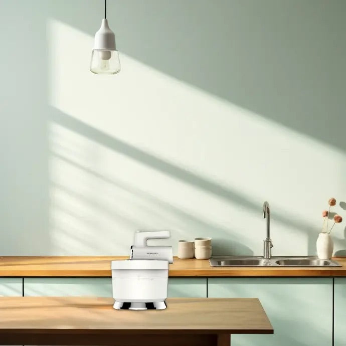 :المميزات-.وضع التشغيل المزدوج-.غطاء مقاوم للانسكاب-.نافذة التغذية-.سهولة الصيانة-.طي الخليط-.عجن العجين-.6 إعدادات للسرعة-.الجهد المقدر: 220-240 فولت-.الطاقة المقدرة: 300 واط-.قابس الطاقة: قابس ثلاثي الدبابيس بالمملكة المتحدة-.اللون: أبيض-.الضمان: 12 شهرًا-448062