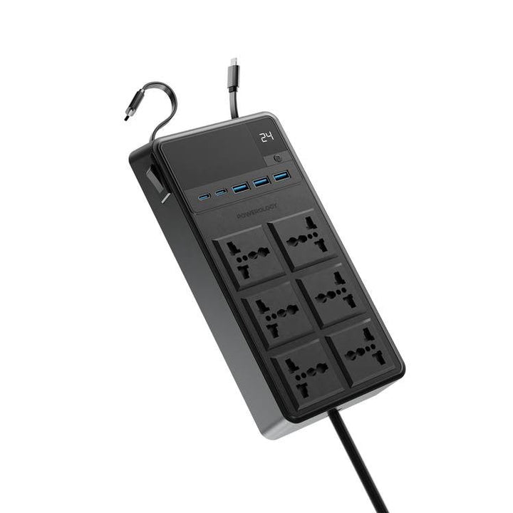 Powerology PWC030 2500W 6 AC Power Strip Built-In Retractable Cable 3M