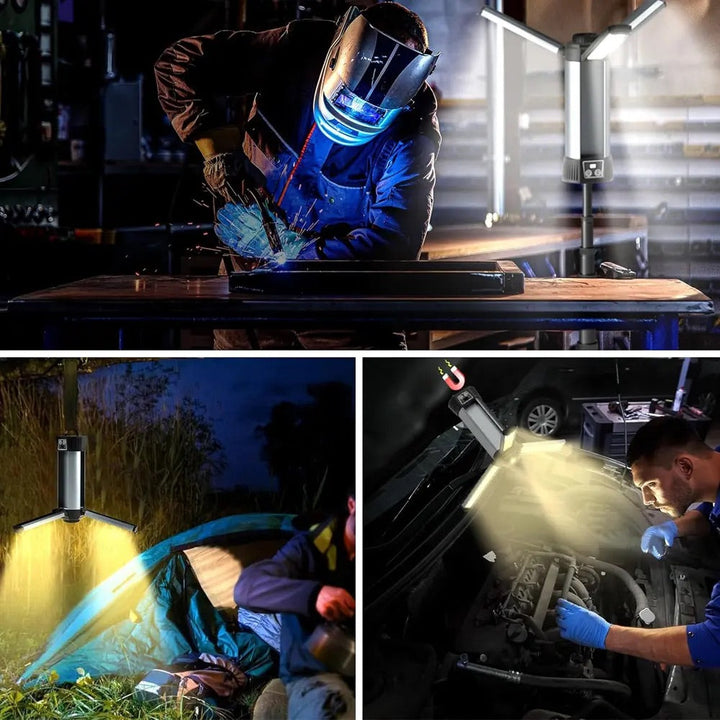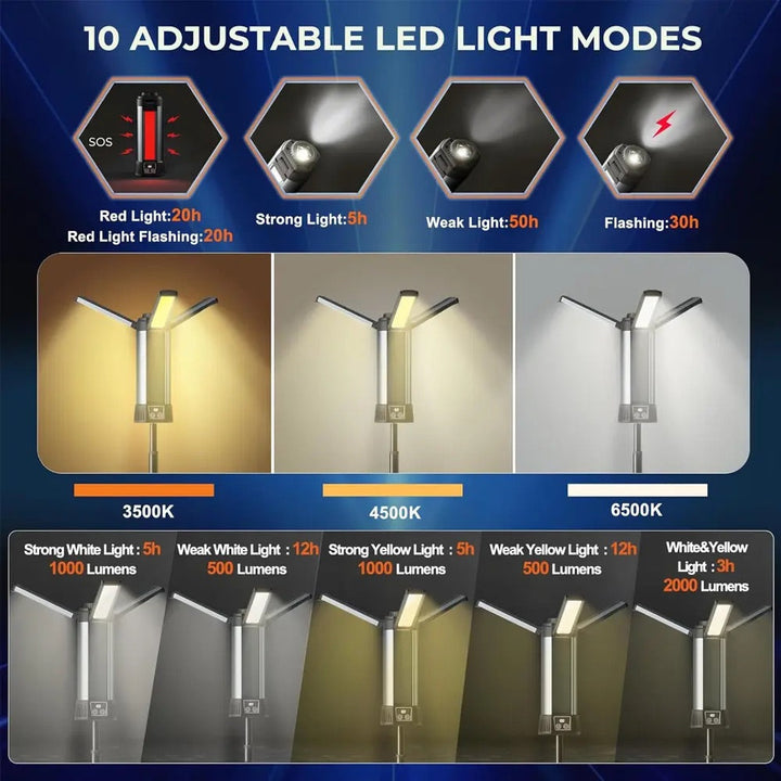 :المميزات- .ثلاثي الأعمدة LED رأس-.بطارية مدمجة-.منفذ شحن تايب سي-.خطاف قابل للطي بمغناطيس قوي-.شاشة عرض رقمية للطاقة-.مصادر إضاءة قابلة للتعتيم-.زاوية التعديل-.تدور بمقدار 270 درجة-.الارتفاع الأقصى: 113.5 سم-.الارتفاع الأدنى: 84 سم-.سعة البطارية: 6000 مللي...
