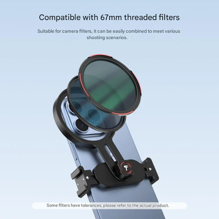 المميزاتتوافق عالمي مع فلاتر 67 مممتوافق على نطاق واسع مع الهواتف الذكيةمثالي لمدونات الفيديو والبث المباشر والتصوير السينمائيخفيف الوزن ومناسب للسفرمانع للانزلاقاللون: أسود914115